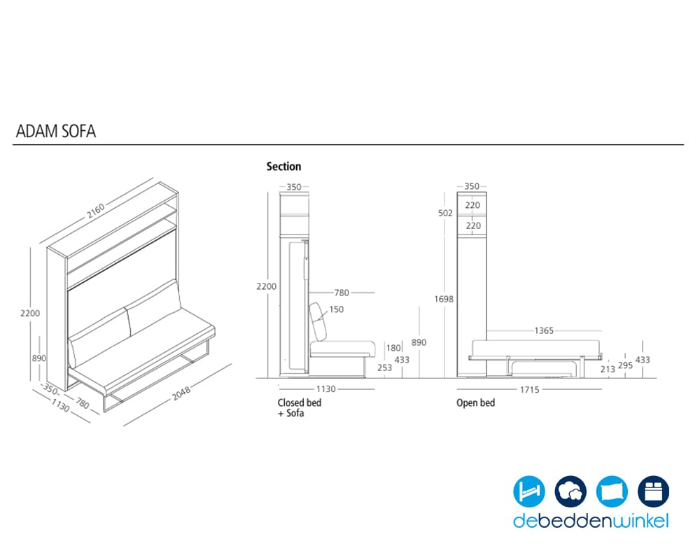 De Clei Adam Sofa is de uitvoering van de Clei Adam waarbij het horizontale opklapbed wordt gecombineerd met een comfortabele bank. Het model Adam standaard is verkrijgbaar zonder bank, terwijl de Adam Sofa juist extra zitcomfort toevoegt aan dezelfde slimme, ruimtebesparende bedkast.