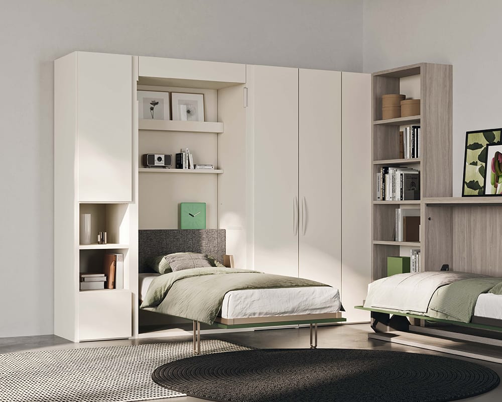 De Clever Shin is een stijlvol en praktisch opklapbed met een verticaal uittrekmechanisme dat elke ruimte optimaal benut. In gesloten toestand oogt Shin als een strakke kledingkast, maar met één vloeiende beweging verandert hij in een comfortabel bed. Het gepatenteerde liftsysteem zorgt ervoor dat het bed veilig kan worden neergelaten en in elke gewenste positie kan worden gestopt — ideaal voor dagelijks gebruik.
